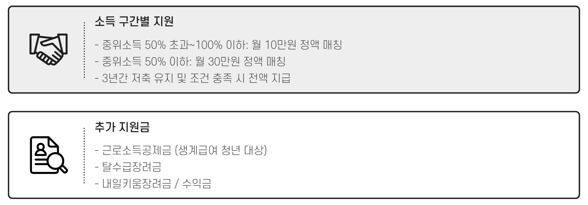 📌 매월 저축액 10만 원 이상 납입 시 정부가 매칭 지원을 해줍니다.