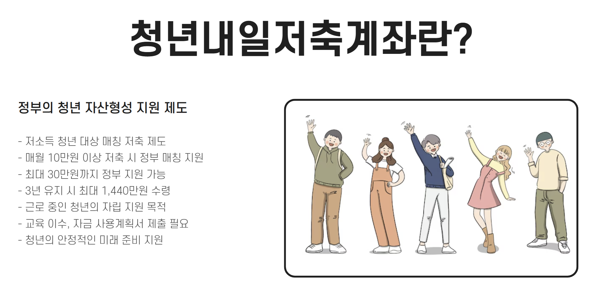 청년내일저축계좌는 **정부가 저소득 청년의 자산 형성을 위해 만든 매칭 저축 제도**입니다.
