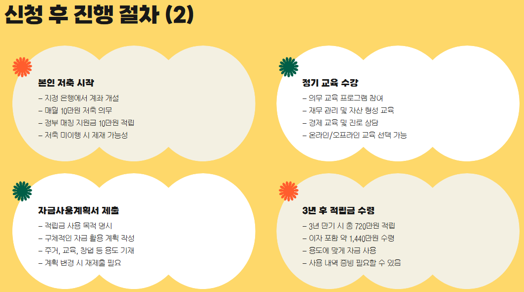 ※ 신청 승인 이후부터 매월 저축을 시작해야 하며, 중도 포기 시 지원금 반환될 수 있으니 주의하세요!