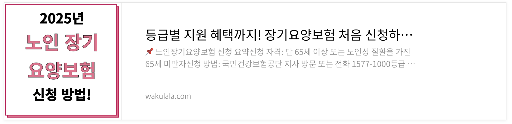 - 신청 대상: 만 65세 이상 또는 노인성 질환이 있는 65세 미만